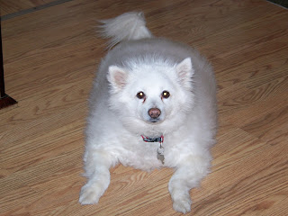 Swee’Pea, a beautiful American Eskimo, became part of our family right around Thanksgiving in 2000. She was 1 ½ years old. My son’s roommate’s mother was her previous owner and sent her with him when he moved in with my son. Being two young men who both worked and liked to play, they knew they couldn’t take care of her so my son asked me if I would take her.
